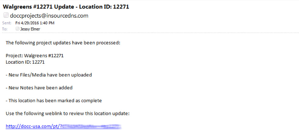 Our clients can choose to be alerted immediately via email whenever an installation location has been updated or completed.