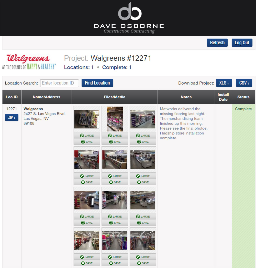 As our installers complete work at each location, they snap several photos of the installation and promptly upload the photos along with any relevant notes into our web-based reporting software.